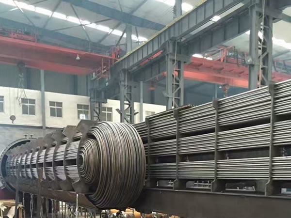 公司現有在線光亮固溶熱處理焊管生產線9條,產品生產范圍為¢6~114.3mm×0.4~4.0mm,專為電力、化工行業所需低壓加熱器配套的U型管生產線2條,產品管腳長可達20m,彎管半徑(R)為28mm~1200mm。主要材質有304,304L,316/L,317/L, 321以及雙相鋼2304,2205,2507等。